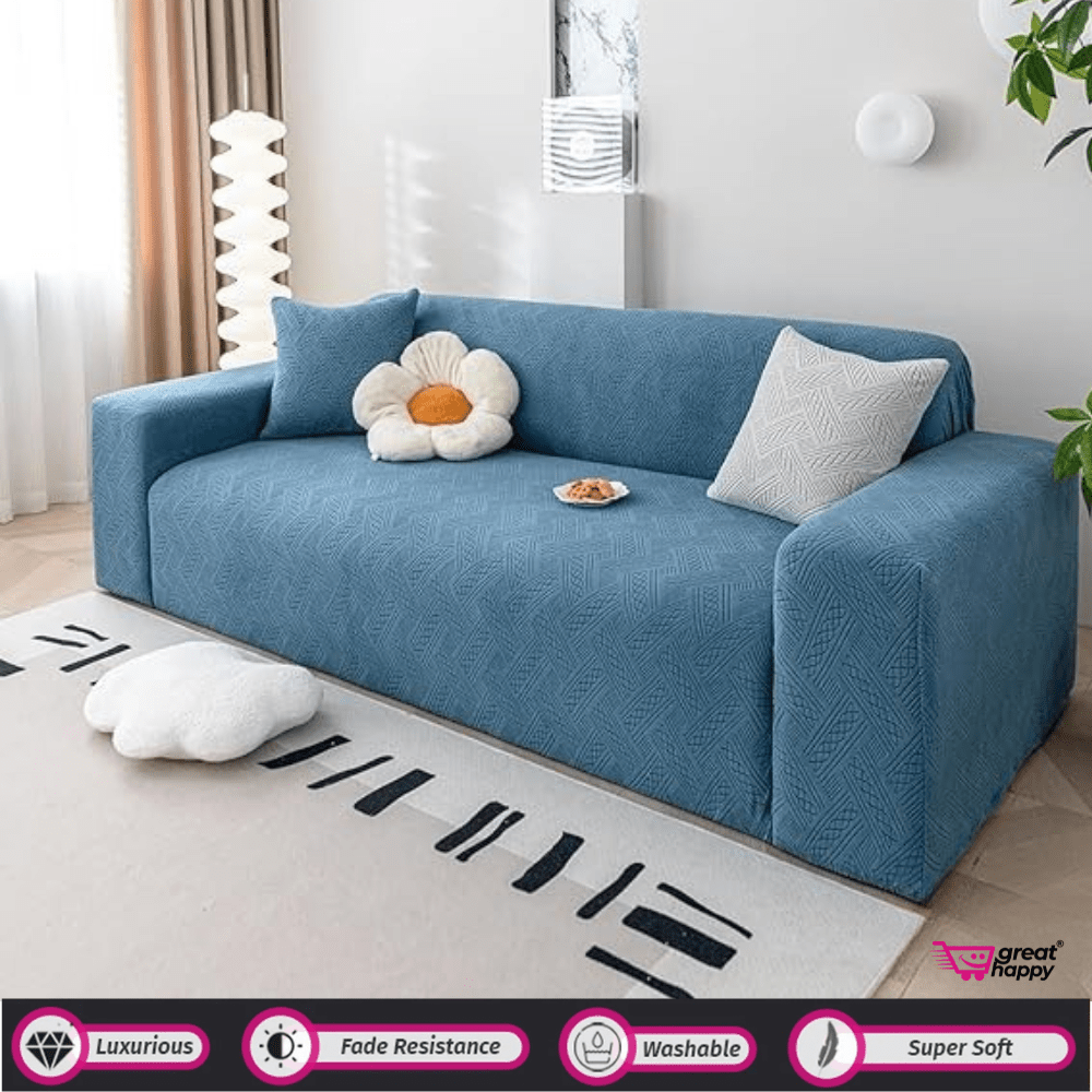 Blue Plaid Texture Jacquard Sofa Cover Great Happy IN