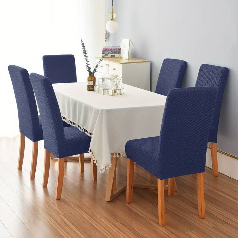 Navy Blue Polar Fleece Premium Chair Cover - Stretchable & Elastic Fitted Great Happy IN 4 PCS - ₹1799