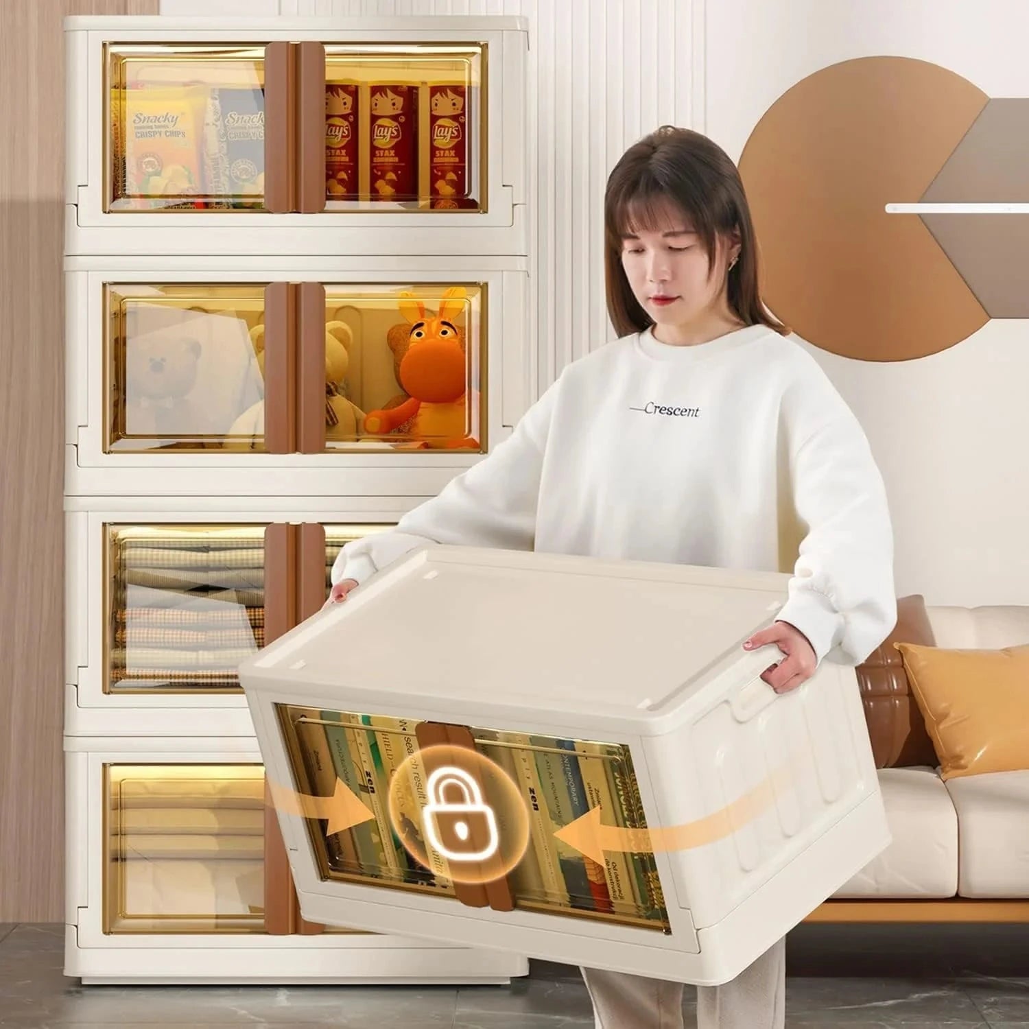 Upgrade your storage game with our 72 L Collapsible Plastic Closet Bin in elegant beige. Designed with effortless assembly—just unfold the four panels, secure them, and close the lid—you can start organizing in seconds without tools. The front panel opens like a door, allowing convenient access to items even when bins are stacked, while safety latches keep contents secure during movement. With a generous 19-gallon capacity (approx. 64 × 40 × 37 cm), it’s ideal for storing clothes, books, toys, linens, or kitchen items. Built to last, this bin features sturdy construction, versatile handles, and optional detachable wheels for smooth mobility. When not in use, fold it flat and slide it under a sofa or bed—space-saving meets smart design.